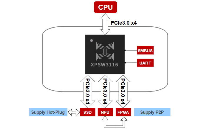 ​PCIe Switch芯片是一种用于扩展PCI Express总线连接能力的硬件设备,主要功能包括扩展连接性、数据交换和带宽分配,它允许多个设备通过单一PCIe端口连接到主机系统。PCIe Switch芯片广泛应用于服务器、数据中心、存储系统等领域,特别是在需要高性能和高带宽的应用场景中。